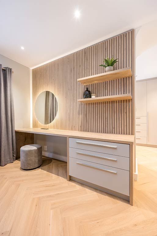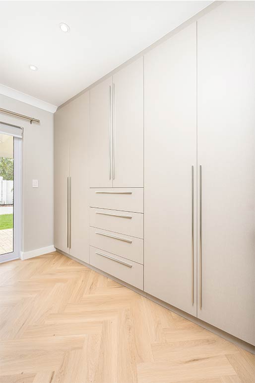Our fitted wardrobes are designed to integrate effortlessly into your space, offering refined, efficient storage with a clean, modern aesthetic. With a wide selection of finishes and configurations, each piece is tailored to complement your interior and elevate everyday living.