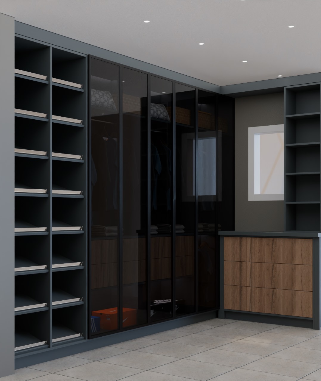 We design custom walk-in closets that offer smart, space-maximising storage solutions. With adjustable shelving, ample hanging space, drawers, and lighting options, our closets create an organised, functional, and modern bedroom environment.